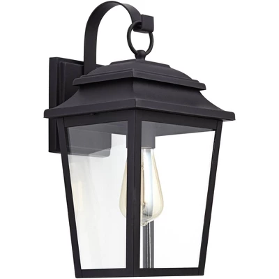 - Outdoor patio or porch wall light from the John Timberland™ brand. Top curved arm and ring detailing inspired by classic, traditional wall lanterns and outdoor lights.