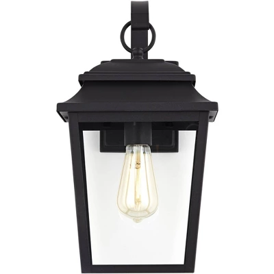 Illuminate a dark patio or entryway area with this outdoor wall light. It comes in a textured black finish over a tapering steel frame, and has clear glass panels that give a full view of the bulb inside. Offering a classy lantern-style look, this outdoor lighting fixture is a wonderful choice for your home.
