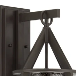 - Set of 2 outdoor wall lights. Each is 13 1/4″ high x 5 1/2″ wide. Extends 8 1/4″ from the wall. Weigh 2.86 lbs.