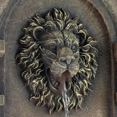- Water flows from the lion’s mouth into the lower two basins. Outdoor or indoor use. From the John Timberland brand.