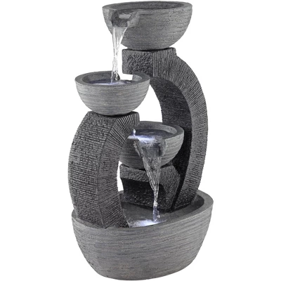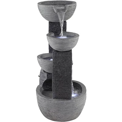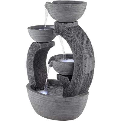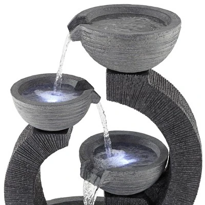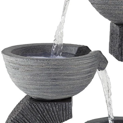 John Timberland Three Cup Modern Japanese Cascading Outdoor Floor Water Fountain With LED Light 31 1/2″ For Yard Garden Patio Home Deck Porch Exterior