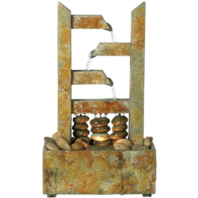 John Timberland Zigzag Zen Modern Cascading Indoor Tabletop Water Fountain With Light 17 1/4″ For Table Office Desk Home Bedroom House Living Room